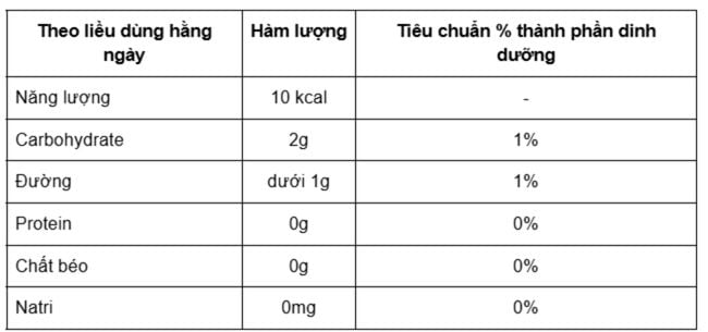 % Giá trị dinh dưỡng: Tỷ lệ so với tiêu chuẩn giá trị dinh dưỡng hằng ngày