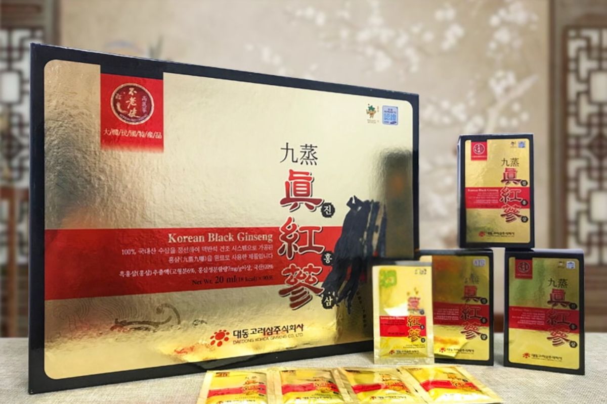 - Chiết xuất hắc sâm Hàn Quốc cao cấp (7mg/g) - trải qua 9 lần hấp sấy, tăng cường sức đề kháng và năng lượng vượt trội.