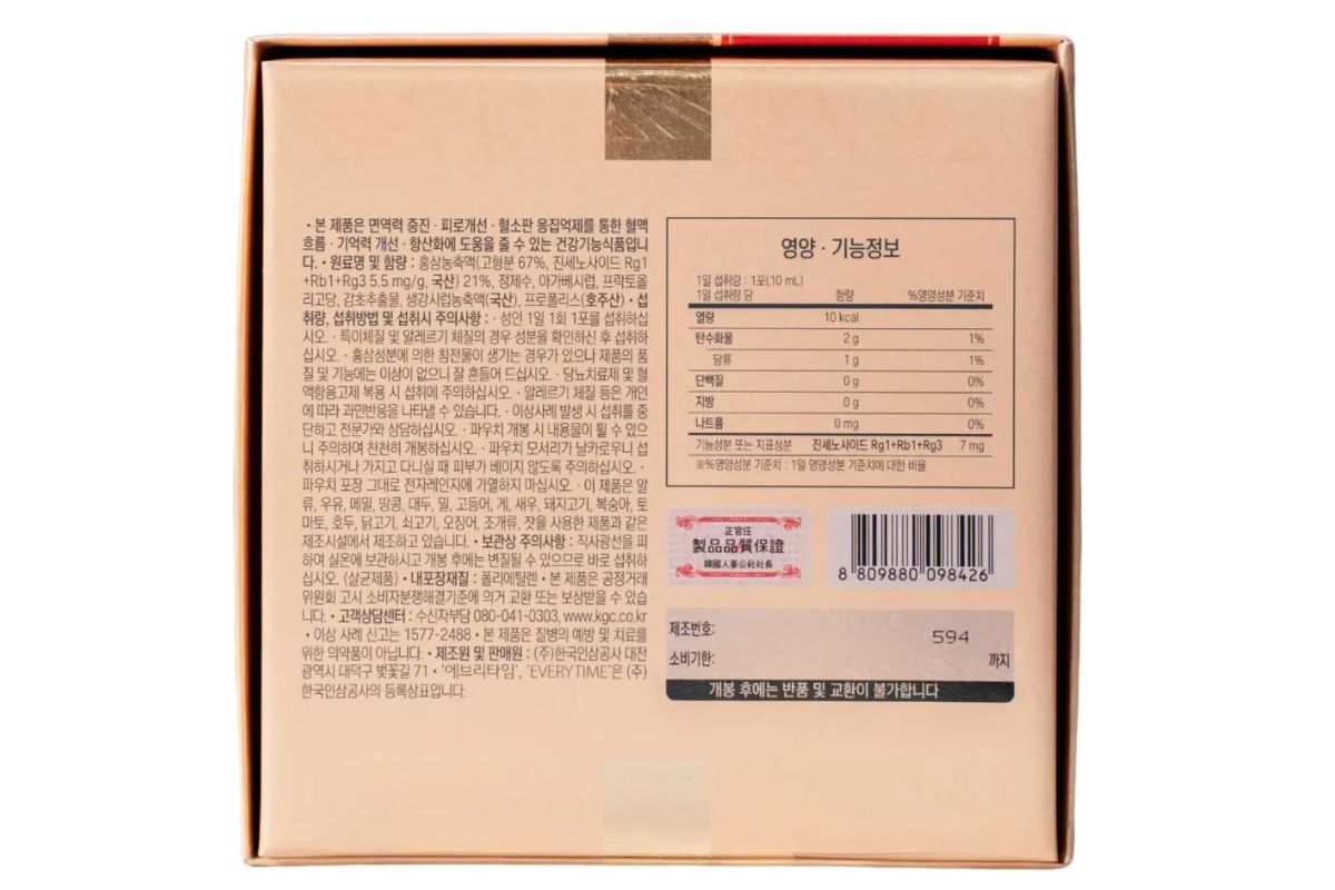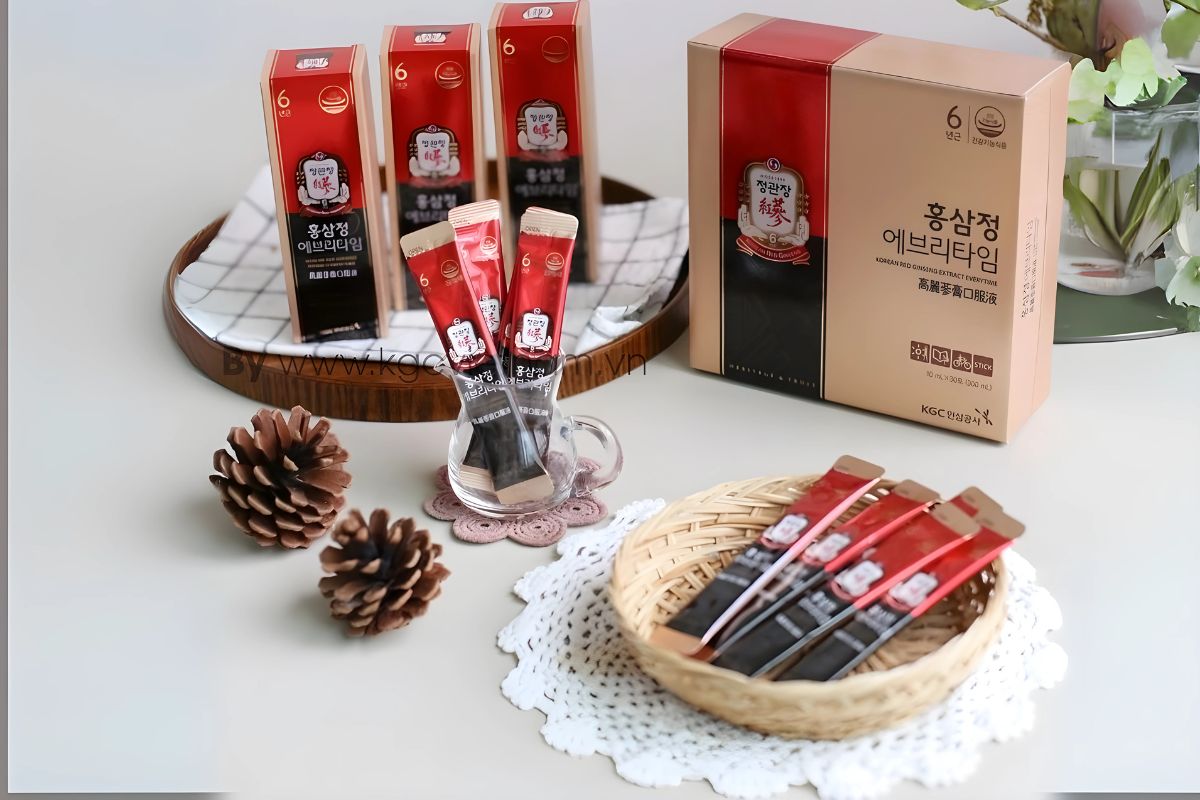 Theo hướng dẫn của nhà sản xuất KGC Jung Kwan Jang, liều khuyến nghị mỗi ngày là 1 gói 10 ml, uống trực tiếp. Thời điểm phù hợp nhất là buổi sáng hoặc trước/sau bữa ăn 30 phút, giúp cơ thể hấp thu tối đa.