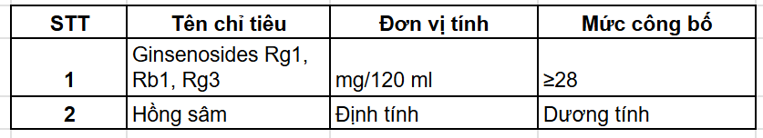 Chiết xuất hồng sâm bổ sung 2,66 g (hàm lượng chất rắn >6%, thành phần hồng sâm 18,62 mg): tăng cường hoạt chất ginsenosides.