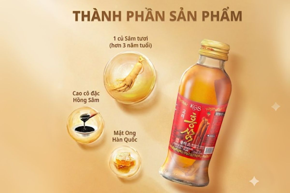 Nước hồng sâm KGS có củ sâm tươi (10 chai x 75ml) là sản phẩm chăm sóc sức khỏe cao cấp từ Hàn Quốc, kết hợp sâm tươi nguyên củ cùng cao cô đặc hồng sâm chuẩn hóa ginsenosides và thảo dược quý như đương quy, đại táo, linh chi. Với công thức giàu saponin và polysaccharide, sản phẩm giúp tái tạo năng lượng, hỗ trợ tuần hoàn máu, cải thiện trí nhớ và làm đẹp từ bên trong. Tại Việt Nam, Vitamax phân phối chính hãng, đảm bảo chất lượng và trải nghiệm an toàn cho người dùng.
