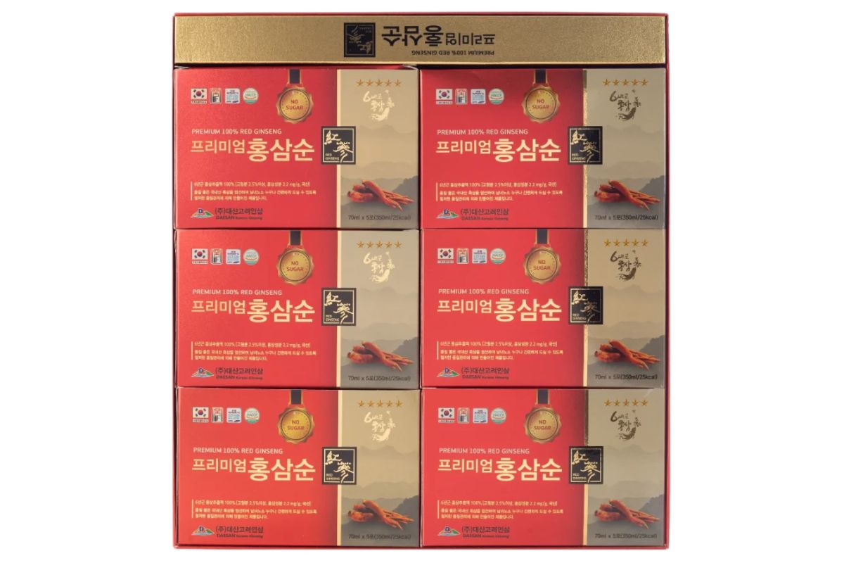 Nước hồng sâm nguyên chất Daesan không đường (30 gói x 70ml) được chiết xuất từ 100% nhân sâm Hàn Quốc 6 năm tuổi, giàu ginsenoside Rg1, Rg3 và polyacetylene. Đây là giải pháp dinh dưỡng an toàn, giúp tăng cường miễn dịch, hỗ trợ tim mạch, ổn định đường huyết và giảm mệt mỏi cho người tiểu đường, người ăn kiêng, người cao tuổi.