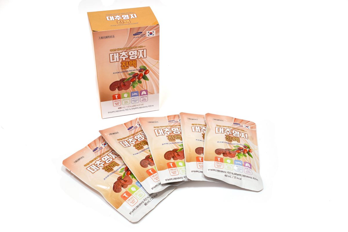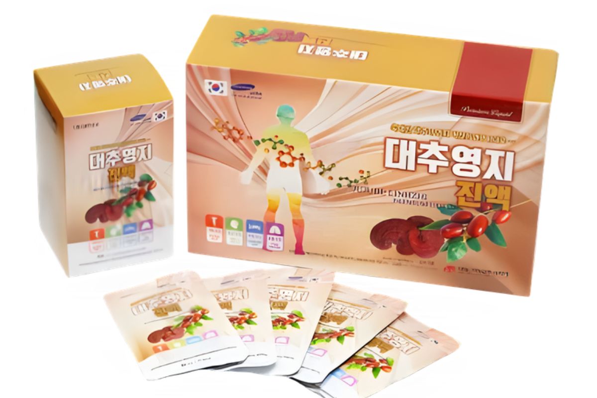 Nguyên liệu & Quy cách đóng gói nước linh chi táo đỏ Daedong Premium