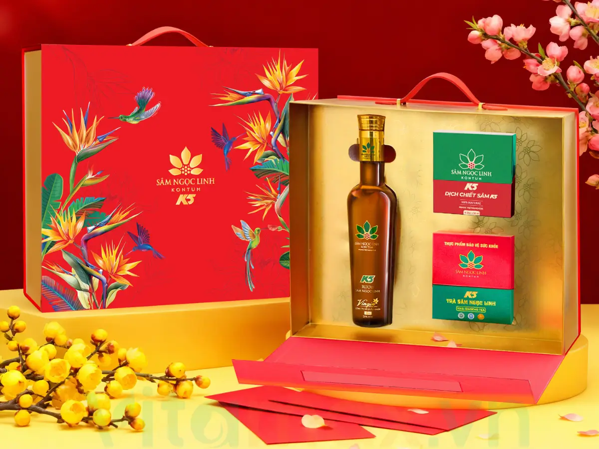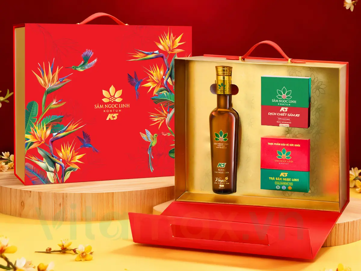 Hộp Quà Tặng Sâm Ngọc Linh K5 – PHÚ XUÂN Phú quý trọn vẹn – Sức khỏe trường tồn – Vượng khí đón xuân