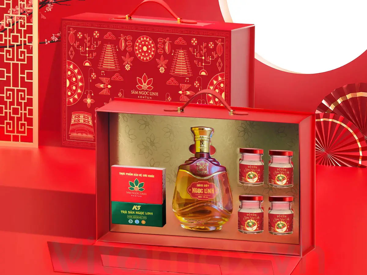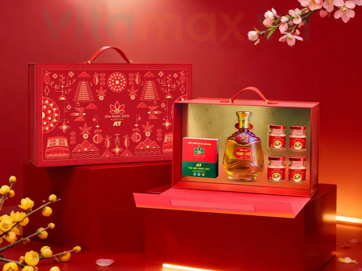 - Bộ 3 sản phẩm cao cấp: Rượu sâm dây + Tổ yến 60ml + Trà sâm Ngọc Linh (15 gói) – bồi bổ khí huyết, tăng sinh lực và làm đẹp da