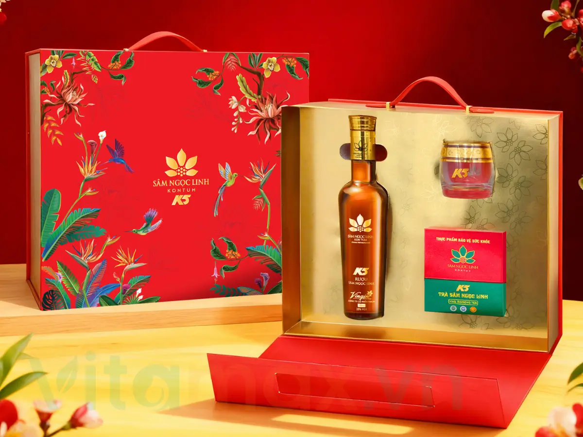 - Bộ sản phẩm cao cấp đặc biệt: Rượu sâm Ngọc Linh Gold + Trà sâm + Ly pha lê sang trọng – tăng sinh lực, lưu thông khí huyết và trải nghiệm đẳng cấp