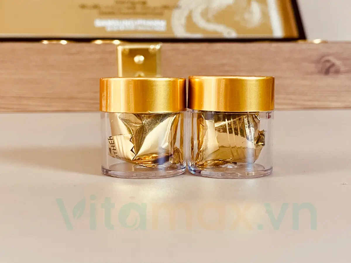 60 viên hoàn mềm: Mỗi viên được bao bọc riêng lẻ trong túi nhựa nhỏ đảm bảo vệ sinh và tiện lợi mang theo