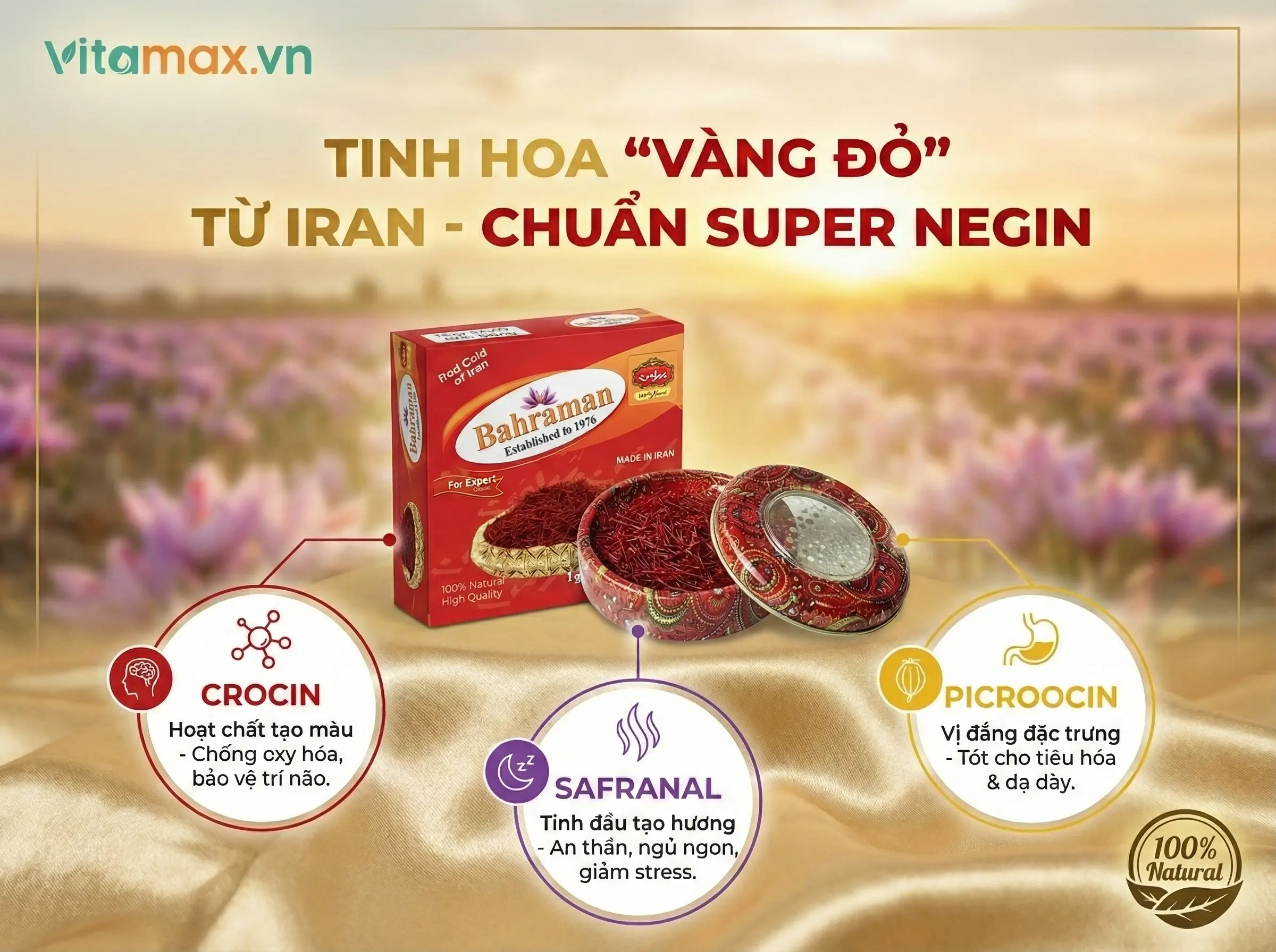 Chính vì thế, việc bổ sung một giải pháp tự nhiên, an toàn và đã được khoa học chứng minh như Nhụy Hoa Nghệ Tây Bahraman Saffron Super Negin trở thành lựa chọn thông minh cho sức khỏe toàn diện.